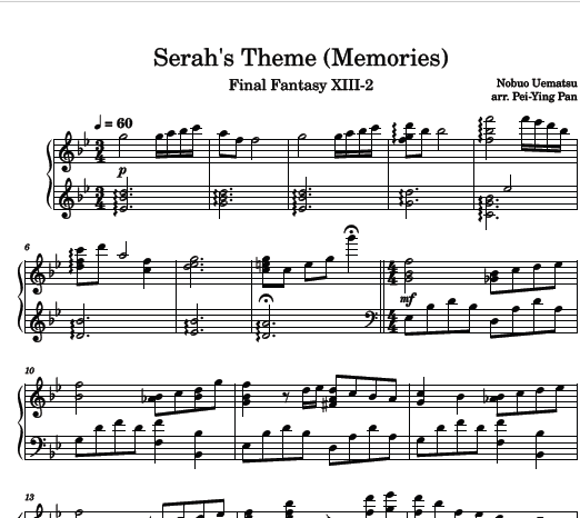 Intermediate piano cover for FF XIII-2, Serah's Theme, Memories, around grade 6-7 level.